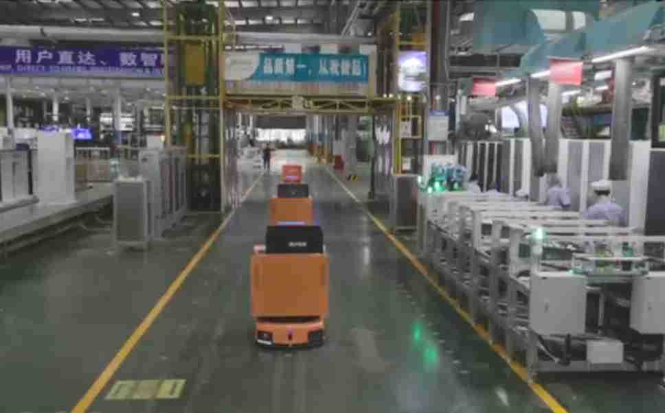 为车载冰箱物流配送打造的智能解决方案,,,包含产中物流通过潜伏举升AMR搬运至线边,,,产后成品物流智能仓储,,,流程包含产中物流智能齐套入库,,,线边安灯叫料AMR智能配送至线边,,,,成品入库、、、出库,,,通过无人堆高车机器人,,,智能仓储管理替代人工作业管理,,实现更高存储、、、更高效率、、更具柔性化的解决方案。。